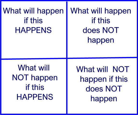 4.  What won’t happen if this doesn’t happen?  What are the disadvantages or costs of not doing it?  Be careful with the double negative in this question and make sure you aren’t answering question 1 all over again.